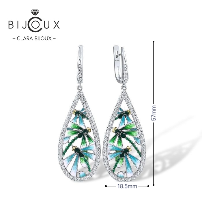 Ефектни дамски обеци с красиво детайлно изработени фигури от Емайл, които няма как да остаат незабелязани. Моделът е изработен от фино родирано сребро. Фигурите са емайлирани, като са заобиколени от бляскави бели Циркони за завършек. Всички бижута са придружени от специален сертификат, удостоверяващ автентичността им. Всяка поръчка пристига при Вас луксозно опакована, в брандирана кутийка и торбичка, готова за поднасяне като подарък.