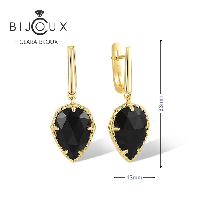 Очарователни дамски обеци, изработени от фино родирано сребро с жълта позлатка, Черен Ахат в капковидна форма е акцентът в бижуто, заобиколен от жълт обков. Всички бижута са придружени от специален сертификат, удостоверяващ автентичността им. Всяка поръчка пристига при Вас луксозно опакована, в брандирана кутийка и торбичка, готова за поднасяне като подарък.