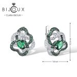 Изящни дамски обеци, с изработка от фино родирано сребро, обсипани с блестящи Бели Циркони в допълнение с Зелени Шпинели, наподобяващи формата на цвете. Всички бижута са придружени от специален сертификат, удостоверяващ автентичността им. На този сертификат можем да изпишем и лично послание за Вас или за когото е бижуто. Всяка поръчка пристига при Вас луксозно опакована, в брандирана кутийка и торбичка, готова за поднасяне като подарък.