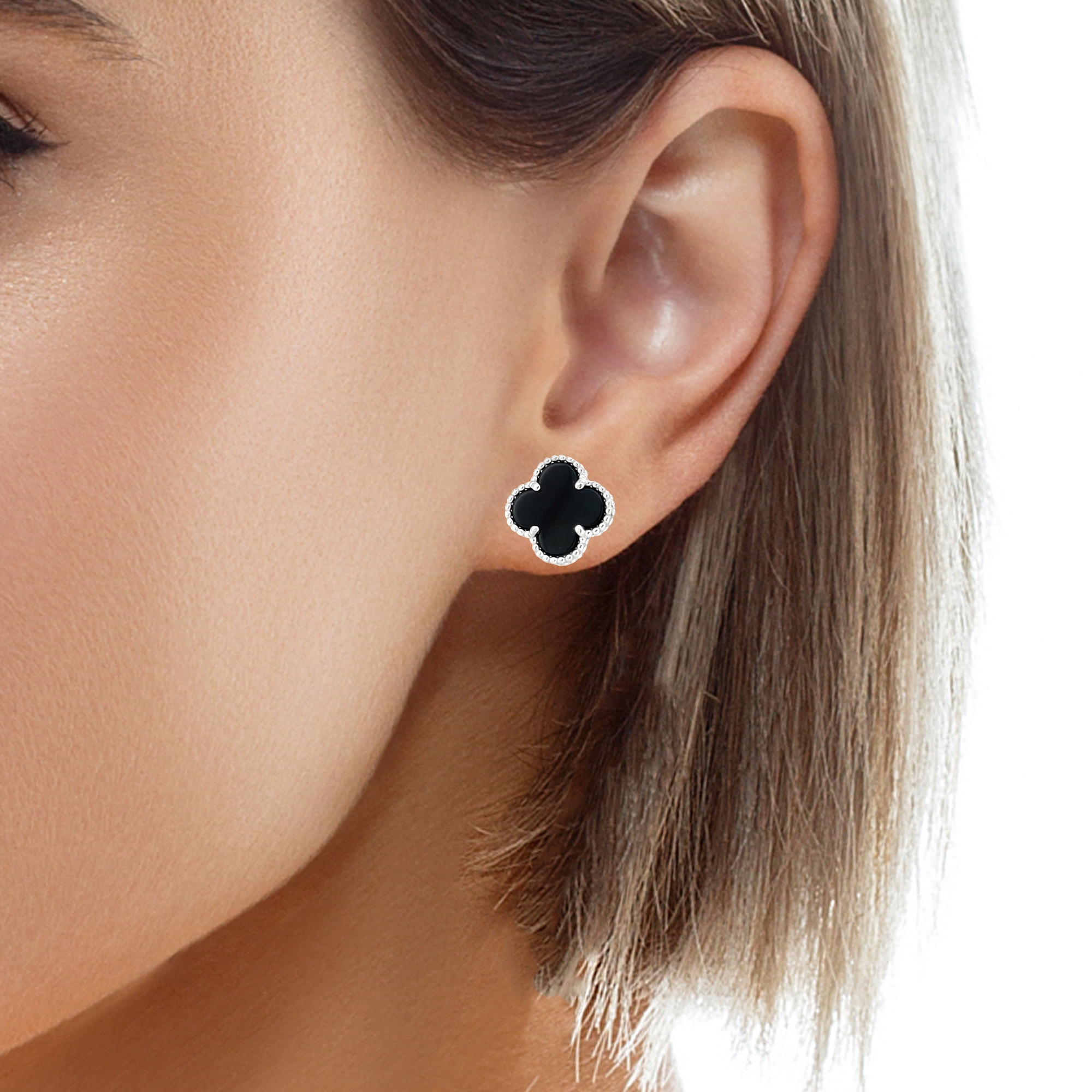 Тези впечатляващи сребърни обеци с черен ахат Clara Bijoux съчетават елегантност, символика и неповторим дизайн. Изработени от родирано сребро 925, те впечатляват с форма на изящна детелинка – символ на късмет и изтънченост. Централният елемент от черен ахат придава усещане за мистерия, сила и увереност.