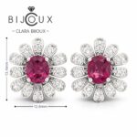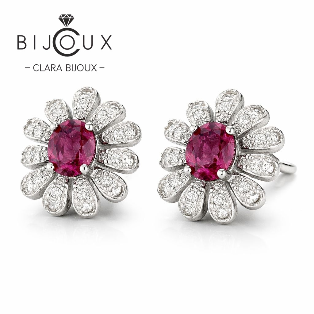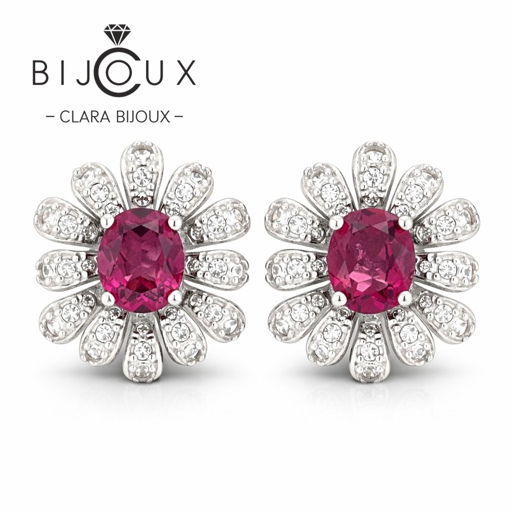 Елегантни сребърни обеци с естествен пироп и сияйни бели CZ, изработени с родиево покритие за дълготраен блясък. Бутиков модел със сертификат, луксозна опаковка и изключително качество на топ цена.