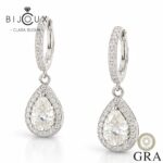 Сребърни обеци мойсанит 2ct са създадени за жени, които обичат деликатните, но забележими бижута. Висящият дизайн добавя движение и светлинен ефект, който подчертава лицето и придава завършеност на визията.