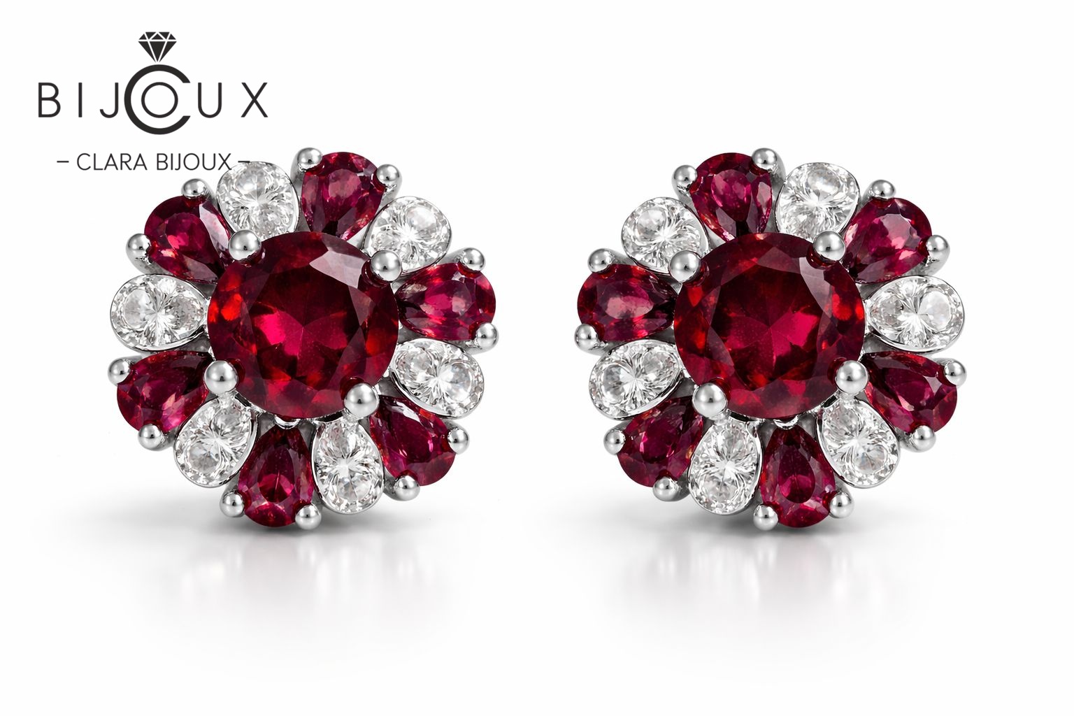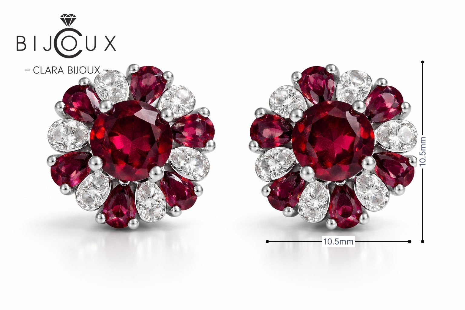 Изработени от висококачествено сребро 925, обеците са леки, удобни и създадени за продължително носене. Родиевото покритие предпазва от надраскване и потъмняване, като запазва блясъка на бижуто за дълго време. Комбинацията от пироп и бели циркони създава баланс между класика и модерен лукс.