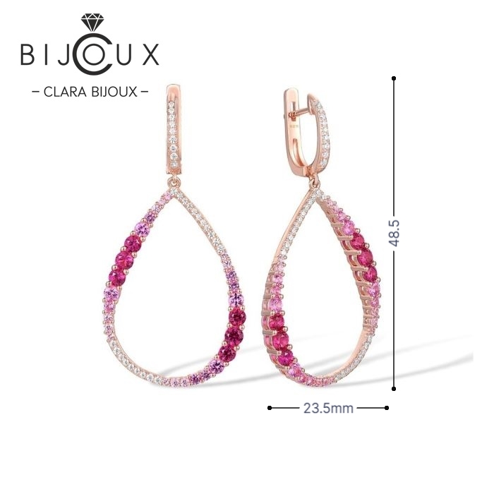 Очарователни дамски обеци, изработени от фино родирано сребро с розова позлатка, обсипани с лабораторни Рубини и Розови Сапфири и Бляскави Бели Циркони, които няма как да останат незабелязани. Всички бижута са придружени от специален сертификат, удостоверяващ автентичността им. На този сертификат можем да изпишем и лично послание за Вас или за когото е бижуто. Всяка поръчка пристига при Вас луксозно опакована, в брандирана кутийка и торбичка, готова за поднасяне като подарък.