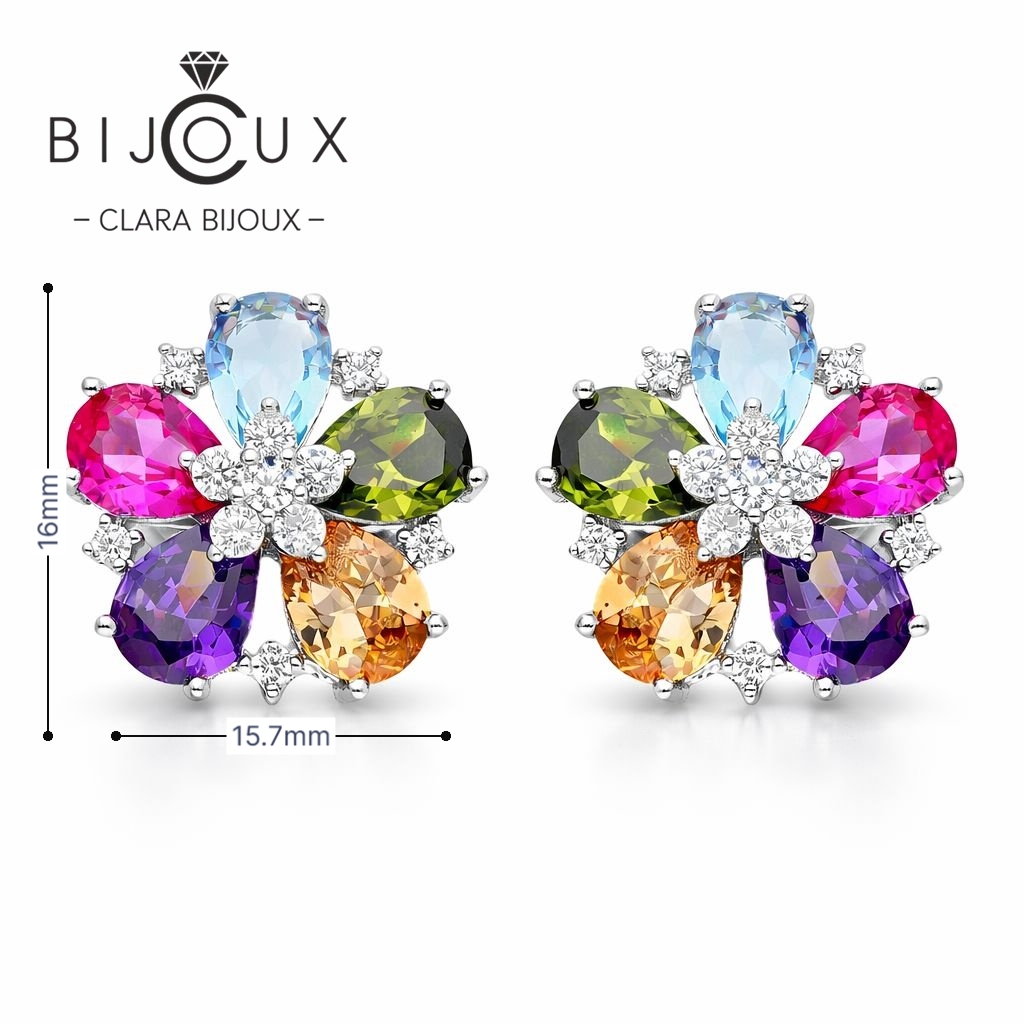 Тези елегантни обеци, изработени от висококачествено родирано сребро са създадени, за да внесат цвят и блясък във всяка визия. Дизайнът им е вдъхновен от природата – фини цветчета, обсипани с искрящи цветни камъни, които отразяват светлината с всяко ваше движение. Леки, удобни и изключително стилни, те са идеален избор както за ежедневието, така и за специални поводи. Всички бижута са придружени от специален сертификат, удостоверяващ автентичността им. Всяка поръчка пристига при Вас луксозно опакована, в брандирана кутийка и торбичка, готова за поднасяне като подарък.