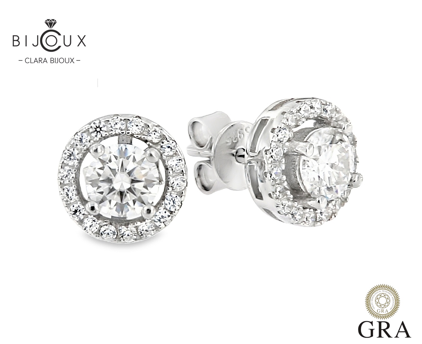 Сребърни обеци Clara Bijoux 1.0ct с мойсанити 💎 GRA Halo