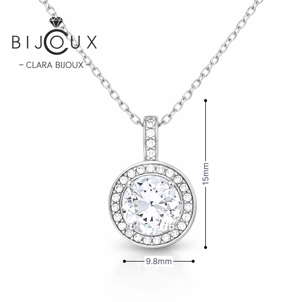 Това изящно колие изработено от родирано сребро включва Бял Циркон в средата, обграден от по-малки бляскави Бели Циркони, елегантно окачено на деликатна сребърна верижка. Перфектно за добавяне на нотка изтънченост към всяко облекло, това бижу е идеално както за ежедневно носене, така и за специални поводи. Верижката е включена в цената. Всички бижута са придружени от специален сертификат, удостоверяващ автентичността им. На този сертификат можем да изпишем и лично послание за Вас или за когото е бижуто. Всяка поръчка пристига при Вас луксозно опакована, в брандирана кутийка и торбичка, готова за поднасяне като подарък.