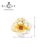 Висулката е изработена от родирано сребро проба 925 с елегантно жълто покритие, което подчертава формата и придава благороден блясък. В центъра на цветето е инкрустиран гранат, който служи като фокусна точка и добавя дълбочина, топъл цвят и луксозно излъчване. Контрастът между емайла и камъка създава хармоничен и запомнящ се дизайн.