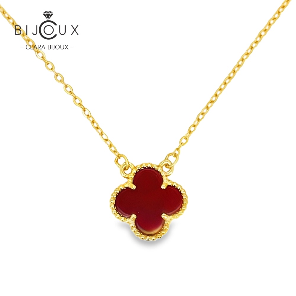 Това сребърно колие с жълта позлатка и червен ахат детелинка Clara Bijoux е талисман на страст, късмет и увереност. Изберете го на топ цена и се насладете на топ качество и луксозно опаковане – запазената марка на Clara Bijoux.