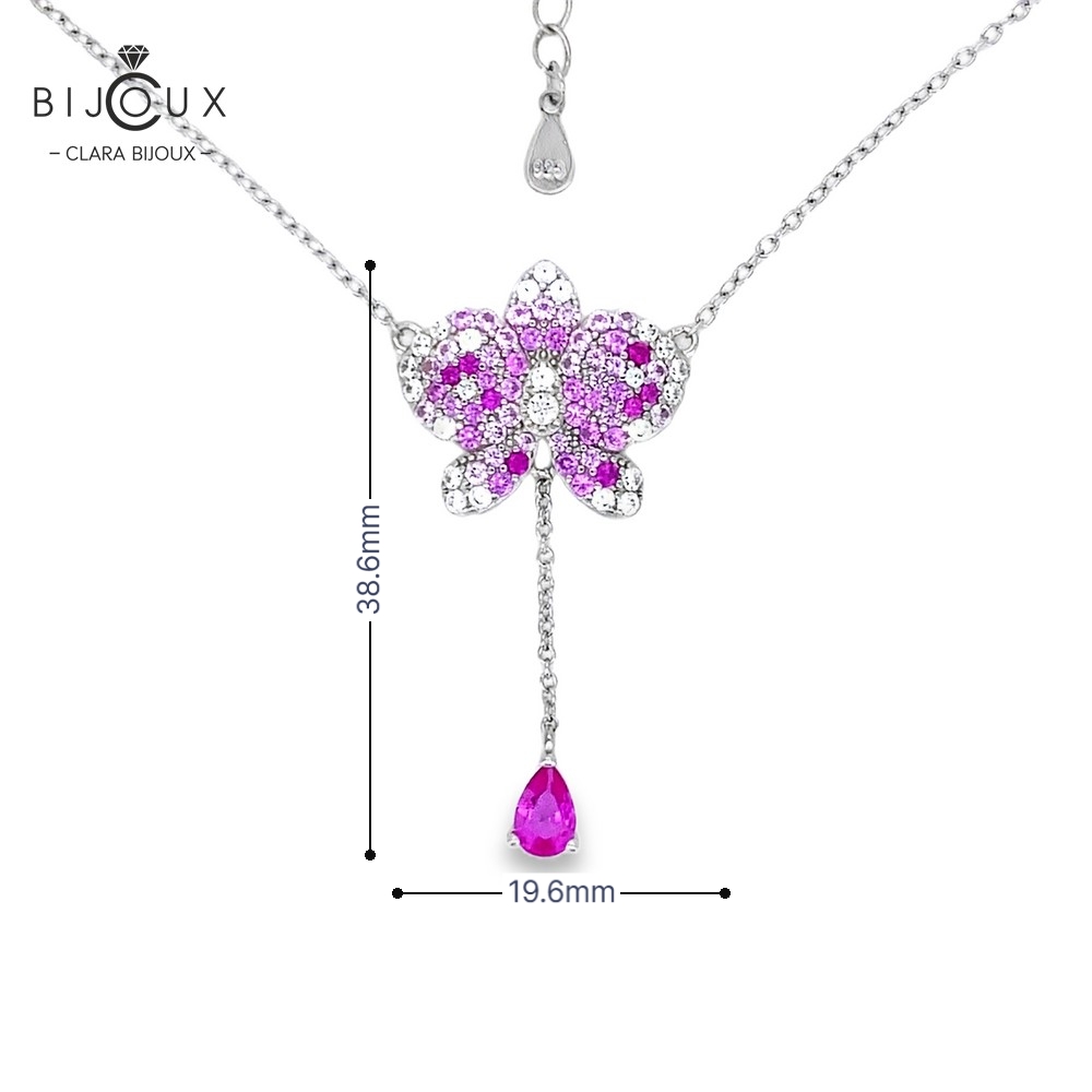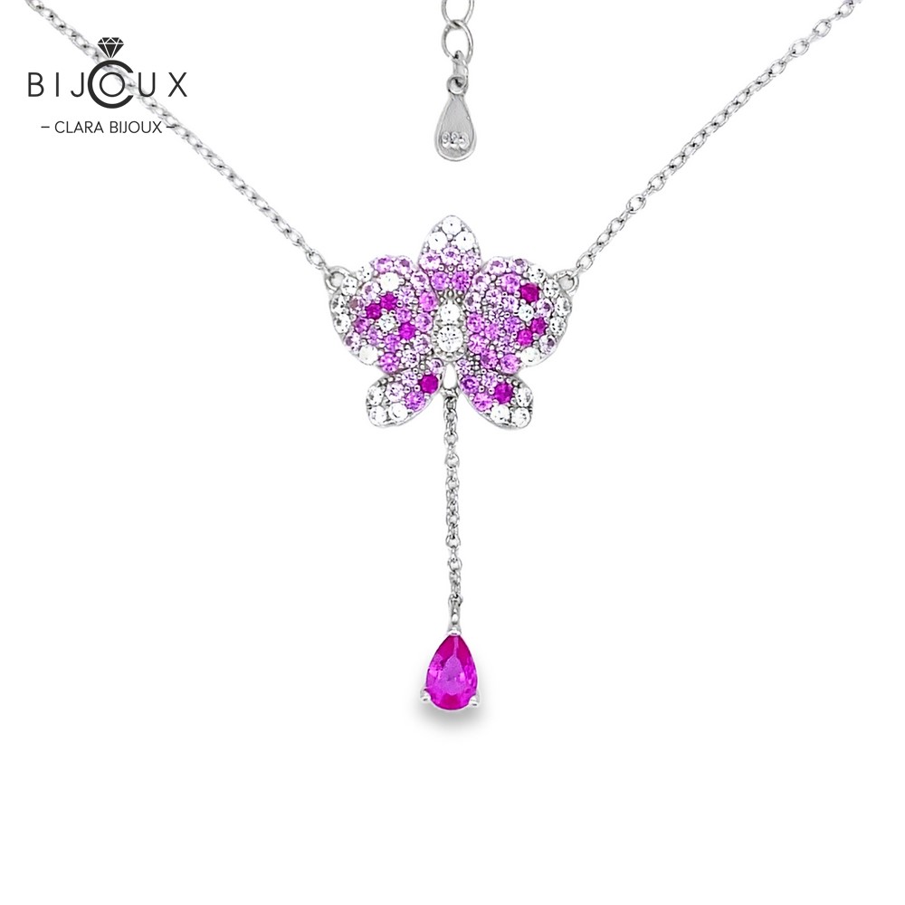 Нежно дамско колие, изработено от фино родирано сребро, обсипани с бляскави Розови и Бели Циркони, наподобяващи формата на цвете. Верижката е включена в цената. Всички бижута са придружени от специален сертификат, удостоверяващ автентичността им. Всяка поръчка пристига при Вас луксозно опакована, в брандирана кутийка и торбичка, готова за поднасяне като подарък.