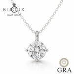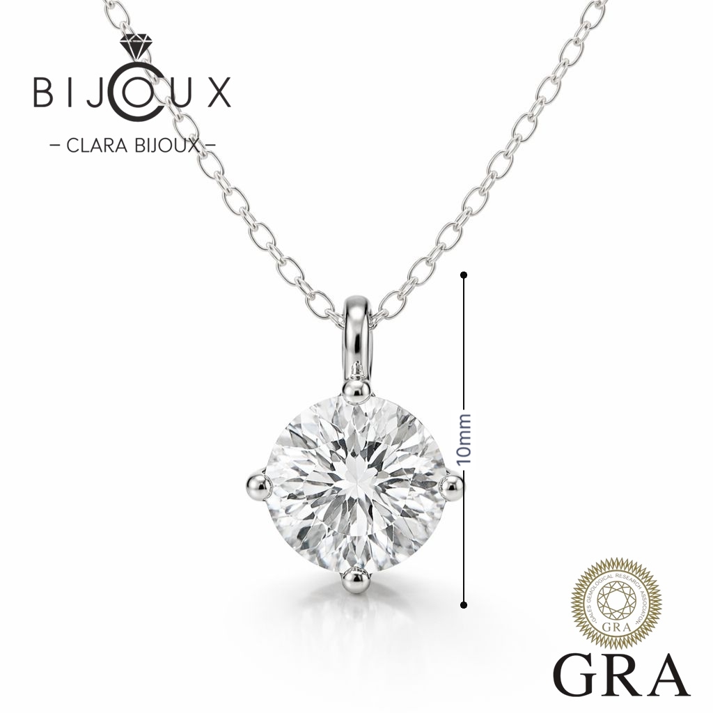 Елегантно дамско колие изработено от родирано сребро със зашеметяващ Мойсанит 1.0ct в средата, улавящ светлината при всяко движение. Неговият елегантен и вечен дизайн го прави идеален аксесоар за всеки повод, добавяйки нотка изтънченост към вашето облекло. Верижката е включена в цената. Всички бижута с Мойсанити са придружени от специален сертификат GRA, удостоверяващ автентичността на камъка. Всяка поръчка пристига при Вас луксозно опакована, в брандирана кутийка и торбичка, готова за поднасяне като подарък.