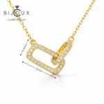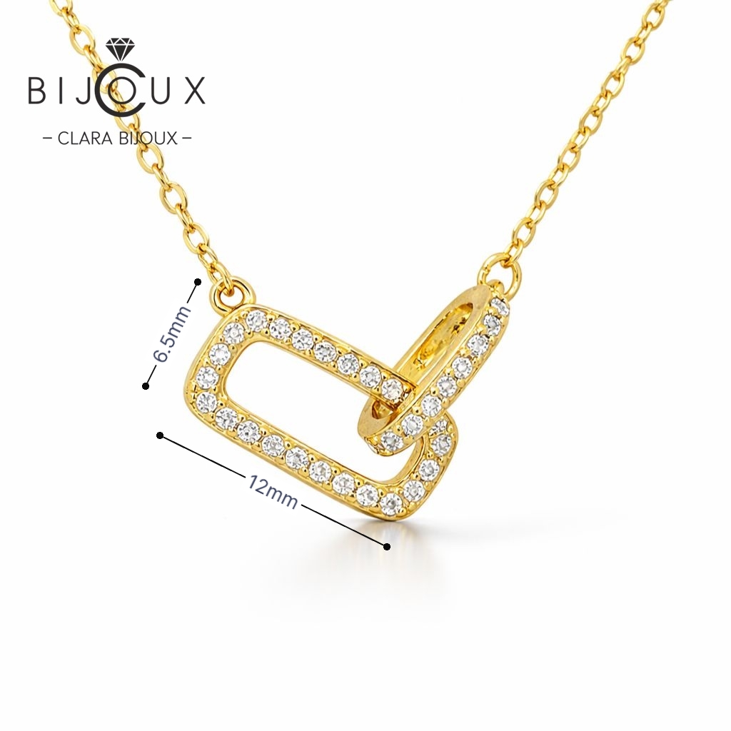 Това сребърно колие с жълта позлатка Clara Bijoux впечатлява с изчистена визия и съвременно излъчване. Централният елемент е оформен в стилна геометрична композиция с деликатно инкрустирани бели CZ камъни, които придават фин блясък и подчертават модерния характер на бижуто. Дизайнът е балансиран и елегантен, създаден да допълва визията, без да доминира.