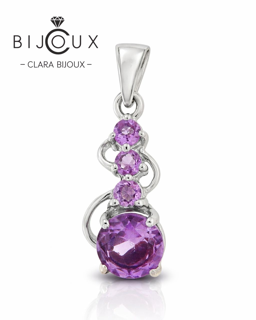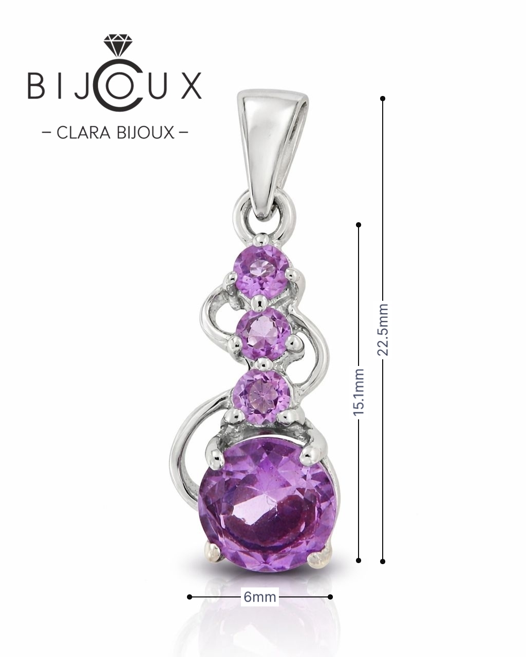 Тази сребърна висулка с аметисти Clara Bijoux впечатлява с деликатен и елегантен дизайн, съчетаващ няколко естествени аметиста, подредени в изящна вертикална композиция. Камъните се отличават с красив лилав нюанс и фин блясък, който придава усещане за женственост, хармония и стил.