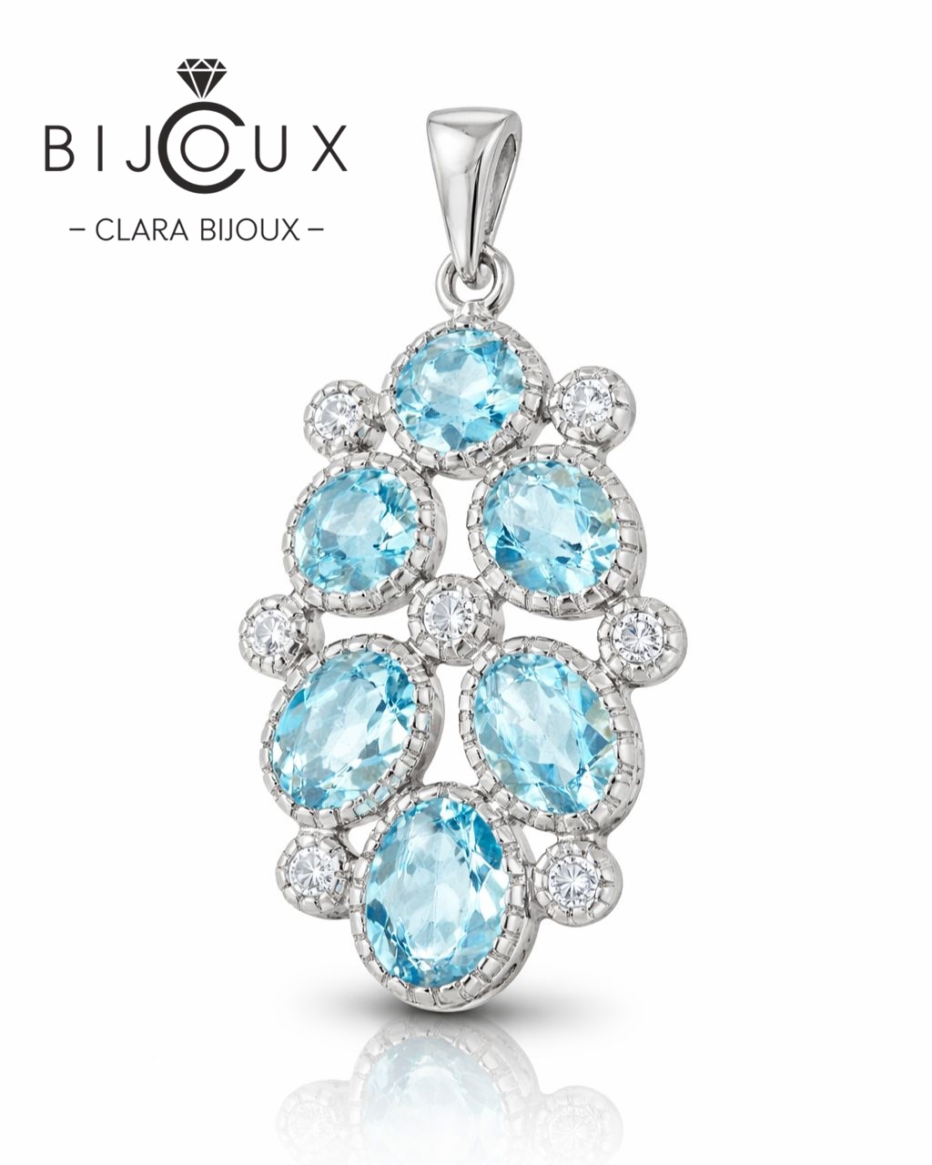 Изискана сребърна висулка с естествени сини топази, изработена от родирано сребро 925. Богат дизайн с нежен блясък и елегантно излъчване. Верижката не е включена.