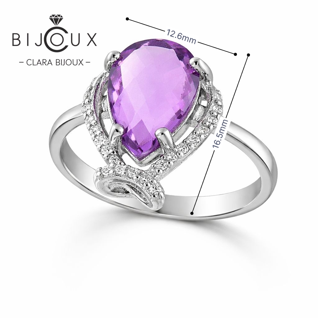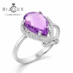 Изящен пръстен за дамите от красиво родирано сребро. Фина изработка на детайлите съчетаващи нежен естествен Аметист, обгърнат от блясъка на камъни циркони. Всички бижута са придружени от специален сертификат, удостоверяващ автентичността им. Всяка поръчка пристига при Вас луксозно опакована в брандирана кутийка и торбичка, готова за поднасяне като подарък.