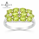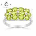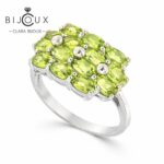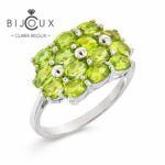 Изящен дамски пръстен, с изработка от фино родирано сребро. Ослепително красиво бижу, обсипано от естествени перидоти, което не може да остане незабелязано. Всички бижута са придружени от специален сертификат, удостоверяващ автентичността им. На този сертификат можем да изпишем и лично послание за Вас или за когото е бижуто.Всяка поръчка пристига при Вас луксозно опакована в брандирана кутийка и торбичка, готова за поднасяне като подарък.