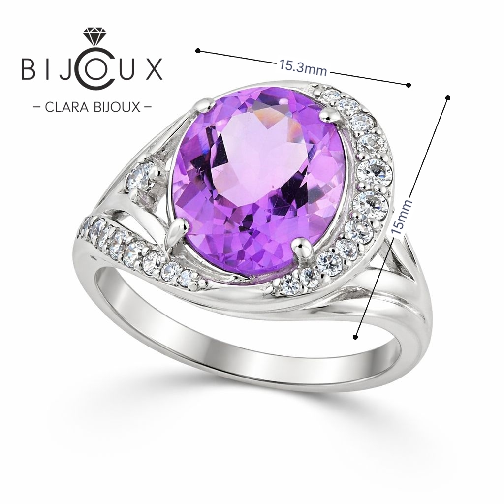 Изящен пръстен за дамите от красиво родирано сребро. Фина изработка на детайлите съчетаващи нежен естествен Аметист, обгърнат от блясъка на камъни циркони. Всички бижута са придружени от специален сертификат, удостоверяващ автентичността им. Всяка поръчка пристига при Вас луксозно опакована в брандирана кутийка и торбичка, готова за поднасяне като подарък.