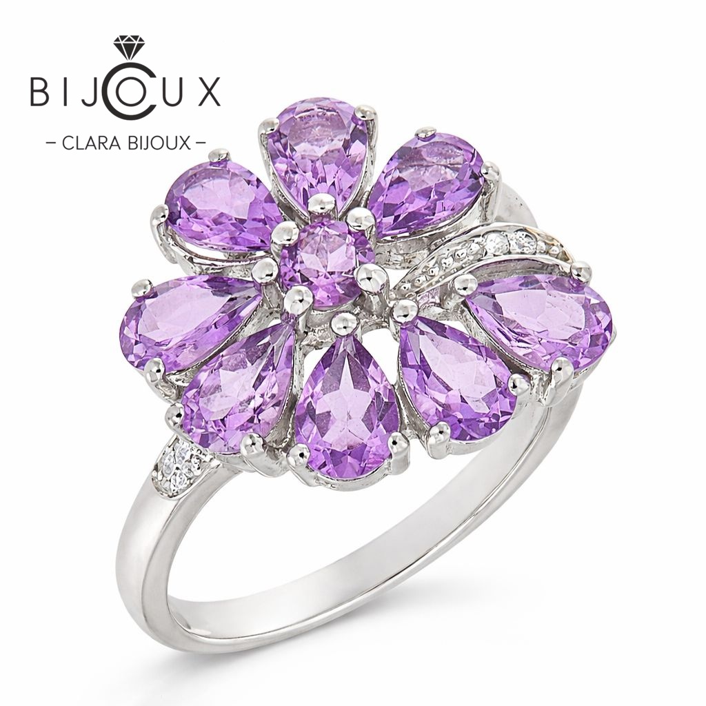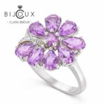 Изящен пръстен за дамите от красиво родирано сребро. Фина изработка на детайлите съчетаващи нежни естествени Аметисти, обгърнат от блясъка на камъни циркони. Всички бижута са придружени от специален сертификат, удостоверяващ автентичността им.Всяка поръчка пристига при Вас луксозно опакована в брандирана кутийка и торбичка, готова за поднасяне като подарък.