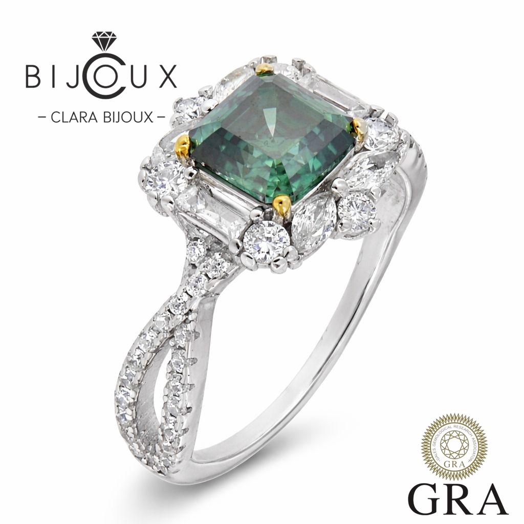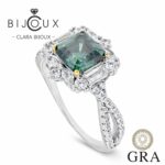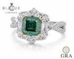 Тъмнозелен мойсанит 2.0ct 7×7мм GRA – сребърен пръстен | Clara Bijoux