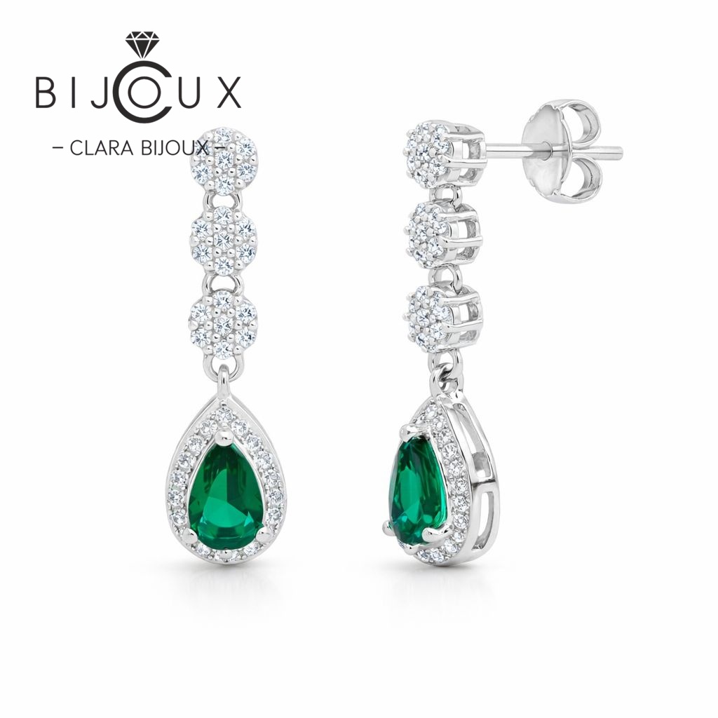 Висящи обеци зелен кристал CZ Clara Bijoux – стил и блясък