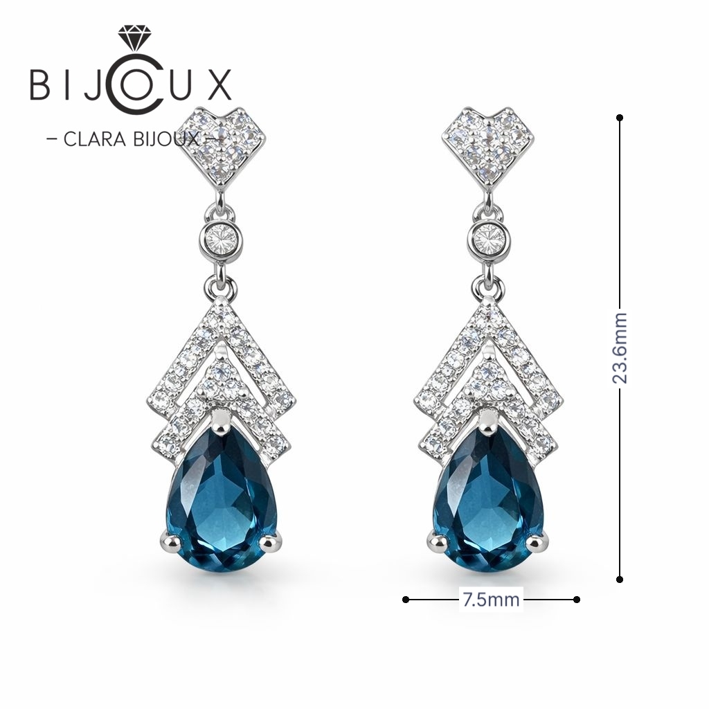 Елегантни висящи обеци от сребро 925 с родиево покритие, украсени с естествен Лондон син топаз и бляскави бели камъни. Луксозен дизайн с дълбок син блясък. Топ качество, топ цена и луксозно опаковане Clara Bijoux.