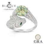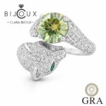 💚 Зелен мойсанит 2.0ct GRA – Луксозен пръстен с пантерен дизайн | Clara Bijoux